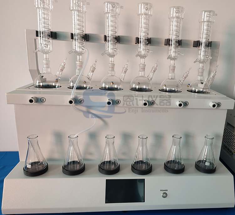 全自動智能蒸餾儀(EJ-ZLY-100Z)是根據實驗室蒸餾預處理操作規程設計,集恒溫加熱、蒸餾終點自動控制、冷卻水循環于一體的新型智能蒸餾處理裝置,該款采用plc控制,集成了精密溫控、自動化防倒吸、防爆沸、防止過量保護、智能雙終點控制,時間控制和+稱重控制(可在線校準),餾出液管路清洗等功能。